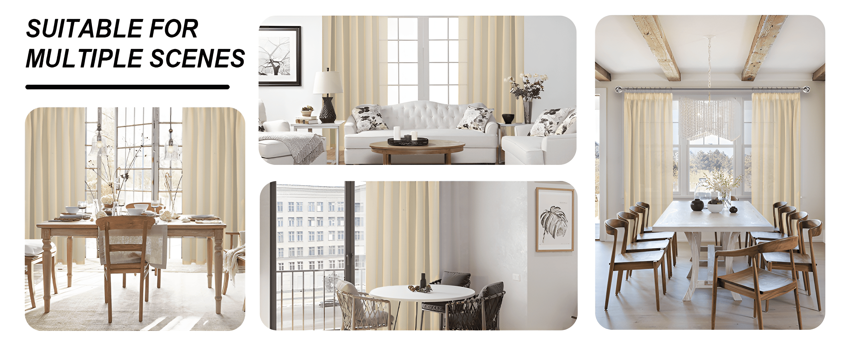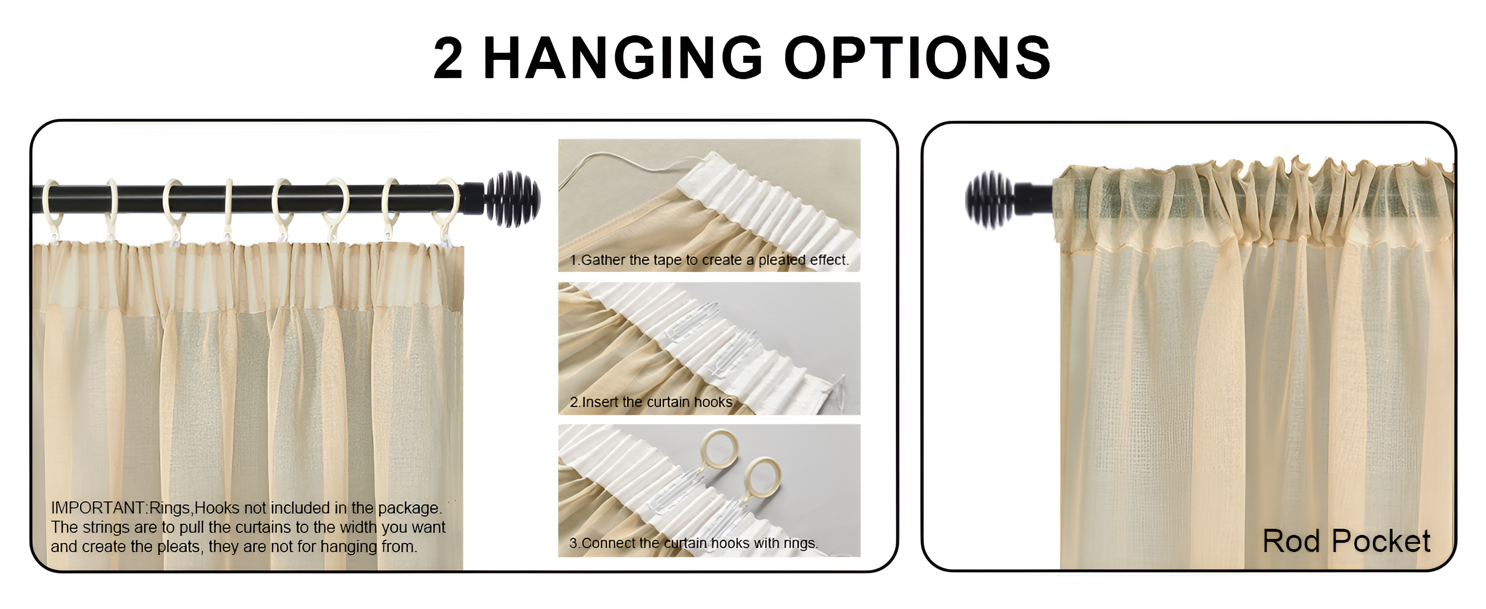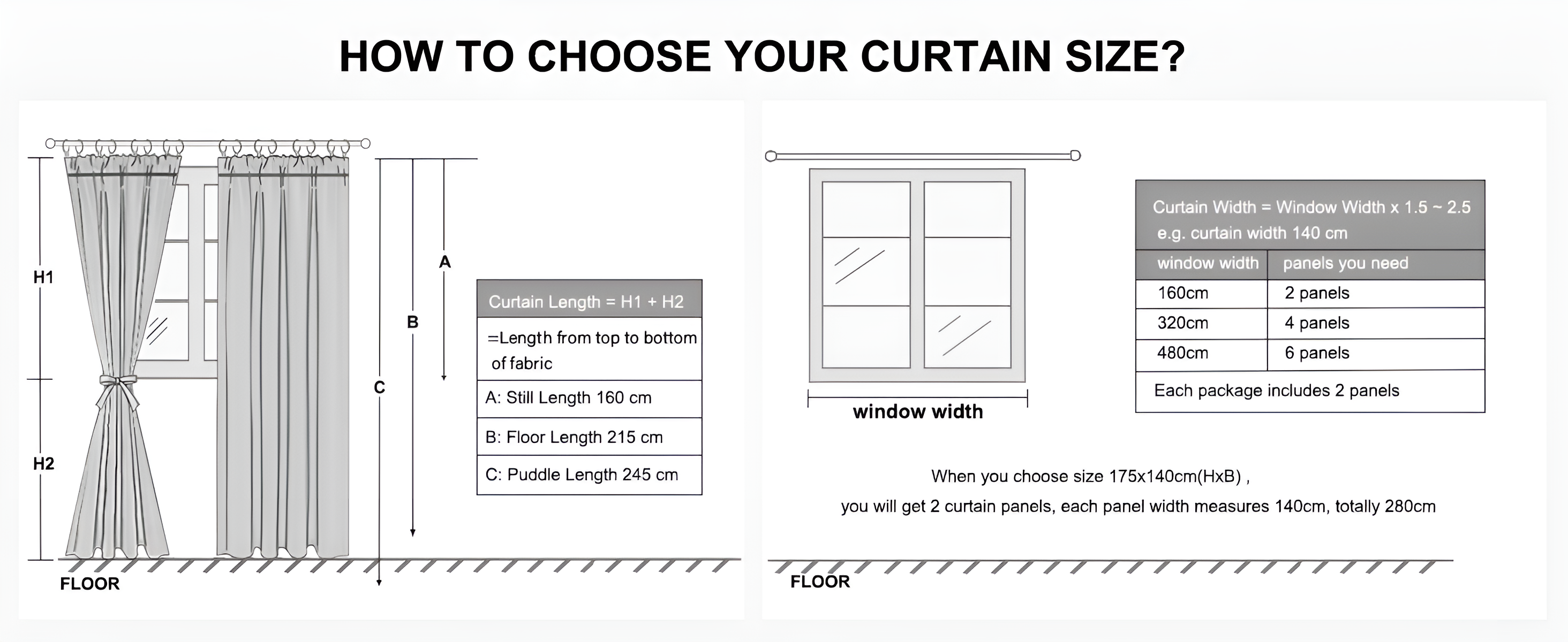 - 2 tiebacks sewn on both sides of each curtain panel.
